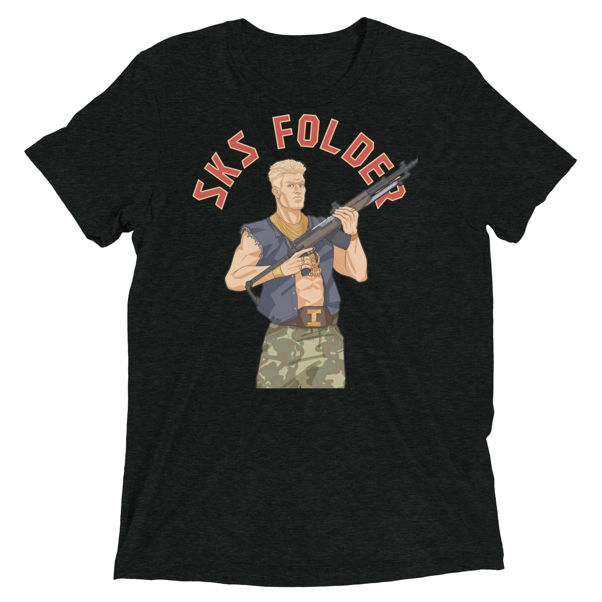 Step into the action with our SKS 2K Folding Stock Ivan Drago Strike Tee — the ultimate fusion of Cold War grit and 80s firepower. Featuring a bold graphic of Ivan Drago locked and loaded with the new SKS 2K folding stock — a tribute to the legendary Mini-14 folder made famous by the A-Team. Built tough, folded mean.